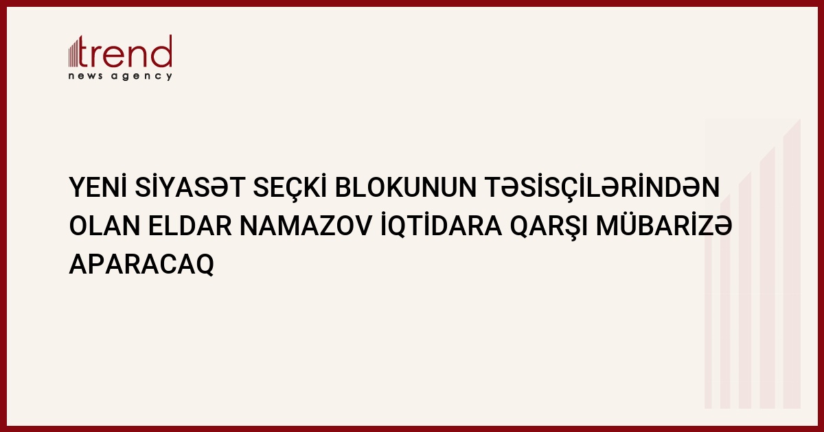"Bu iqtidar tərəfindən mənə qarşı növbəti təxribatdır". Bu barədə Trend ə "Yeni Siyasət" seçki blokundan namizədliyi 17 saylı Yasamal birinci seçki dairəsindən qeydə alınan politoloq Eldar Namazov bildirib.
