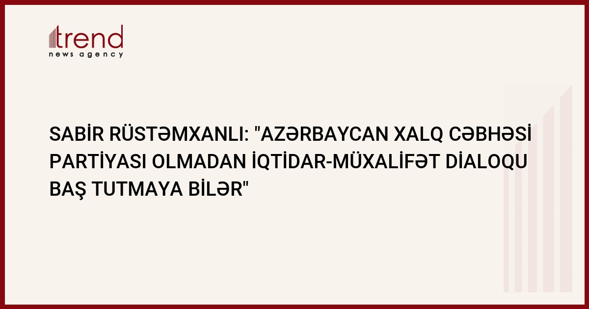 "İndiki dönəmdə iqtidarla-müxalifət arasında dialoqun baş tutmasına həvəs göstərən qüvvə yoxdur" Bu barədə Trend agentliyinə iqtidarla-müxalifət arasında dördüncü dərfə dialoqun baş tutmasına təşəbbüs göstərən müxalifətyönlü Vətəndaş Həmrəyliyi Partiyasının (VHP) sədri, millət vəkili Sabir Rüstəmxanlı bilidirb.
