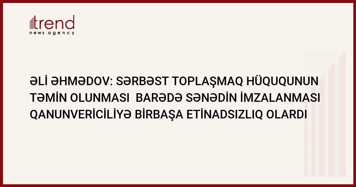 Vətəndaşlarnın sərbəst toplaşmalarının təmin olunması məsələləri ilə öhdəçiliyin götürülməsi və ya razılaşmanın imzalanması mövcud qanunvericiliyə birbaşa hörmətsizlik olardı. Trend in məlumatına görə, belə bir bəyanatla sentyabrın 12-də ATƏT-in Bakı nümayəndəliyinin təşkil etdiyi seminarda iqtidardakı "Yeni Azərbaycan" partiyasının icraçı katibi Əli Əhmədov çıxış edib.