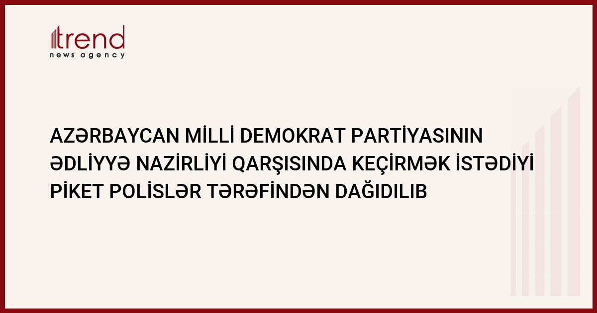 "Azərbaycan Milli Demokrat Partiyasının (AMDP) sentyabrın 12-də Ədliyyə Nazirliyinin binası qarşısında piket keçirmək cəhdi polislər tərəfindən dağıdılıb". Bu barədə Trend -ə AMDP sədrinin birinci müavini Şəmsəddin Rəhimli bildirib.