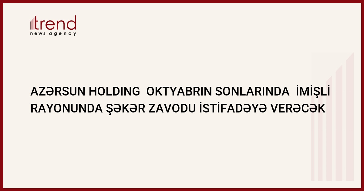 Oktyabrın sonlarında Azersun Holding Azərbaycanın İmişli rayonunda şəkər zavodunu istifadəyə vermək niyyətindədir. Bu barədə Trend ə şirkətdən məlumat veriblər. Hazırda zavodda tamamlayıcı işlər aparılır, eləcə də, müxtəlif avadanlıqlar quraşdırılır.
