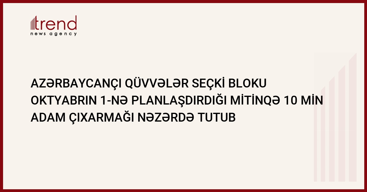 "Azərbaycançı Qüvvələr (AQ) seçki bloku oktybarın 1-ə planlaşdırdığı mitinqə 10 min insan çıxarmağı nəzərdə tutub" Bu barədə Trend agentliyinə AB seçki blokunun təisiçilərindən olan Vəhdət Partiyasının sədri Tahir Kərimli bildirib.