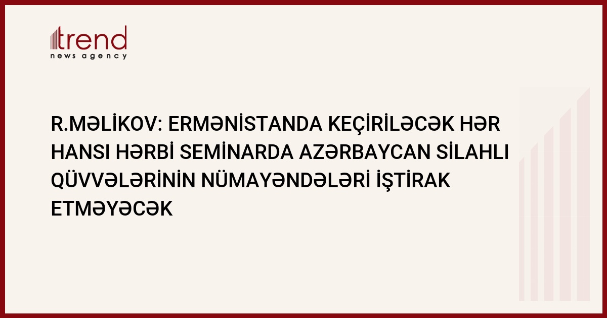 R.Məlikovun sözlərinə görə, Rusiyanın "ARKA" informasiya agentliyinin Ermənistan parlamentinin milli müdafiə, daxili işlər və milli təhlükısizlik məsəsələri üzrə daimi komissiyasının sədri Mher Şahgeldyana istinadən yaydığı bu xəbər həqiqətə uyğun deyil.
