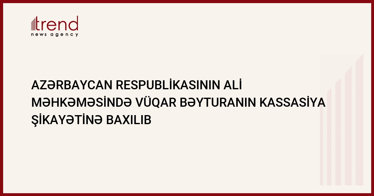 Sentyabrın 29-da Azərbaycan Respublikası Ali Məhkəməsində hakim Şəlalə Məmmədovanın sədrliyi ilə Türk Millətçi Partiyasının sədri Vüqar Bəyturanın kassasiya şikayətinə baxılıb. Trend məlumat verir ki, V.Bəyturanın məhkəmə orqanlarına müraciət etməsinin səbəbi 70 saylı Masallı seçki dairəsi tərəfindən namizədliyinin qeydə alınmaması, Mərkəzi Seçki Komissiyasının (MSK) isə həmin qərarı qüvvədə saxlaması olub.