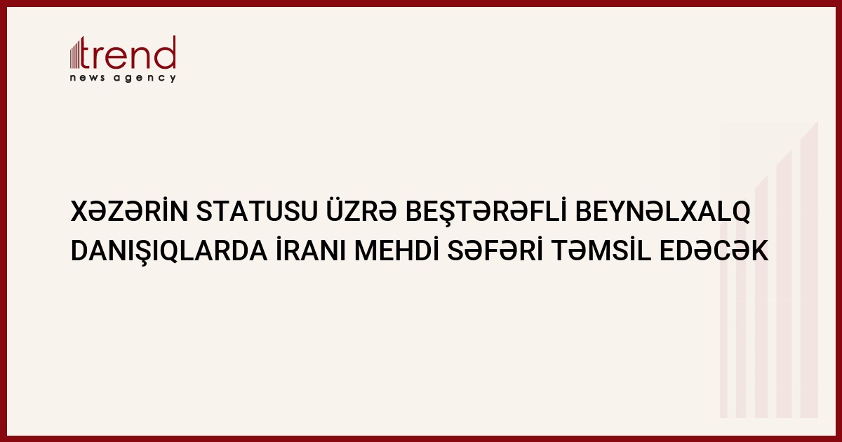 Oktyabrın 6-da Bakıda Xəzərin statusu üzrə Xəzəryanı ölkələr arasında aparılacaq beştərəfli danışıqlarda İranı bu ölkənin prezidentinin Xəzər problemi üzrə xüsusi nümayəndəsi Mehdi Səfəri təmsil edəcək. İranın Azərbaycandakı səfirliyinin mətbuat xidmətinin rəhbəri Lütfəli Əzimzadənin Trend ə bildirdiyi kimi, M.Səfəri xarici işlər nazirinin Asiya, Okeaniya və MDB ölkələri üzrə müavinidir və İranın Xarici İşlər Nazirliyinin 5 nəfərdən ibarət nümayəndə heyətini müşayiət edəcək. Səfər çərçivəsində M.Səfəri Xəzərin statusu üzrə Azərbaycan-İran danışıqlarında iştirak edəcək. İşçi qrupunun növbəti 18-ci iclasında 5 Xəzəryanı ölkənin Xəzərin statusu üzrə mövqelərinin yaxınlaşdırılması ilə bağlı məsləhətləşmələr və ekoloji problemlər üzərində işlər davam etdiriləcək, bioloji ehtiyatlardan istifadə və onların qorunması, hidrometeorologiya, dəniz və hərbi gəmiçilik sahəsində sazişlərin layihələri razılaşdırılacaq.
