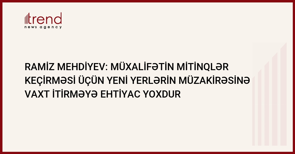 Azərbaycan prezidenti İcra aparatının (PİA) başçısı Ramiz Mehdiyev hesab edir ki, müxalifətin etiraz aksiyası keçirməsi üçün yeni yerlərin axtarılması məsələsinin müzakirəsinə vaxt itirməyə ehtiyac yoxdur . Trend in məlumatına əsasən, o, sentyabrın 29-da bu barədə jurnalistlərə bildirib.