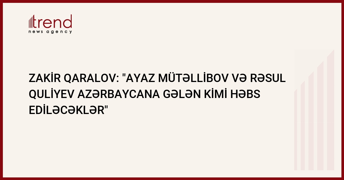 Deputatlığa namizədlər Ayaz Mütəllibov və Rəsul Quliyev Azərbaycana gələn kimi həbs ediləcəklər. Trend məlumat verir ki, bu barədə Azərbaycan Respublikasının Baş Prokuroru Zakir Qaralov jurnalistlərlə söhbətində bildirib.