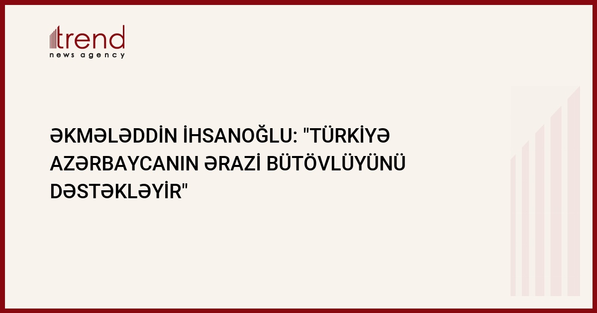 Türkiyə Azərbaycanın ərazi bütövlüyünü dəstəkləyir.Dağlıq Qarabağ Azərbaycanın ayrılmaz hissəsidir. Trend in Strasburqda olan xüsusi müxbiri bildirir ki, oktyabrın 4-də İslam Konfransı Təşkilatının (İKT) baş katibi Əkmələddin İhsanoğlu AŞPA prezidenti Rene van der Lindenlə birgə keçirdiyi mətbuat konfransında bu bəyanatla çıxış edib.