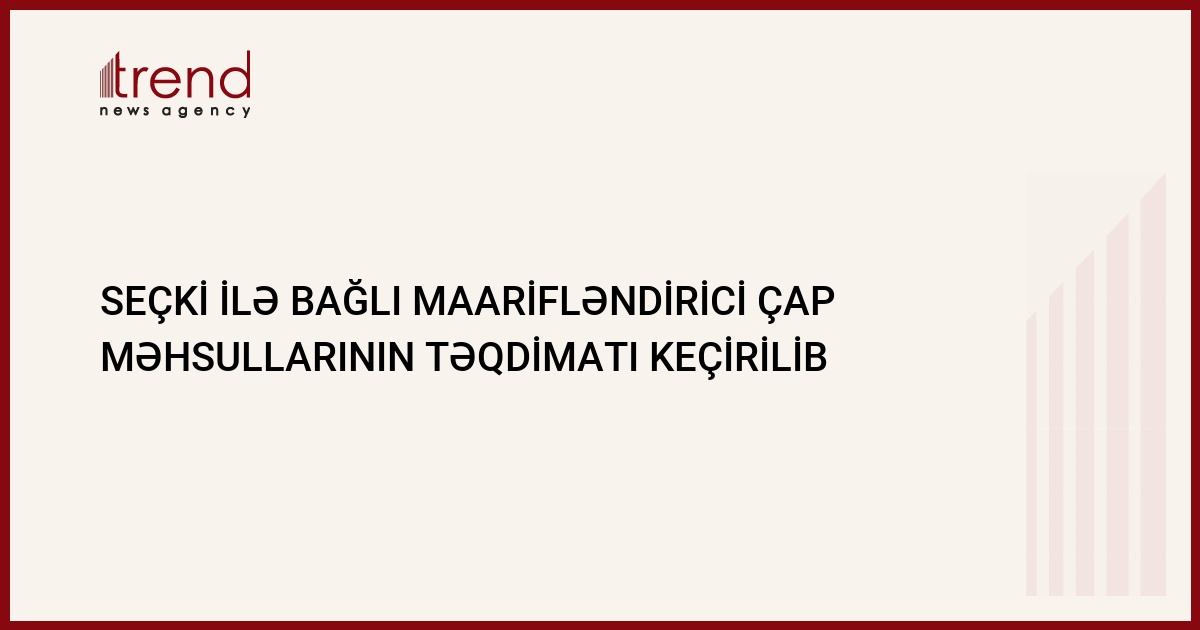 Azərbaycanda Vətəndaş Cəmiyyətinin İnkişafına Yardım Assosiasiyası (AVCİYA) noyabrın 6-da keçiriləcək parlament seçkisi ilə əlaqədar maarifləndirici xarakterli müxtəlif çap məhsullarını nəşr etdirib. Trend in məlumatına görə, oktyabrın 10-da Beynəlxalq Mətbuat Mərkəzində seçki ilə bağlı nəşr olunmuş materialların təqdimat mərasimi keçirilib.