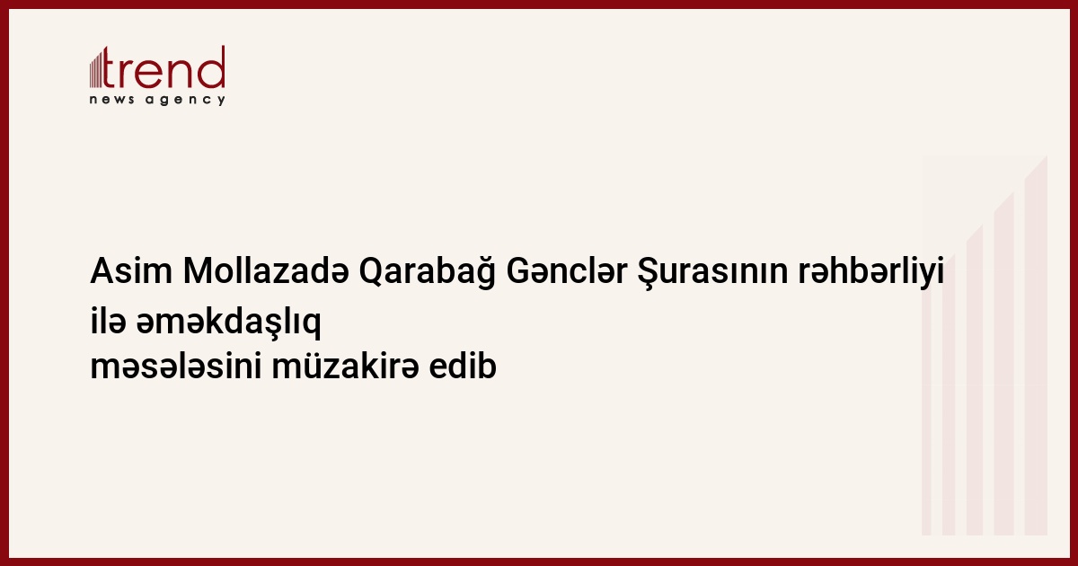 Demokratik İslahatlar Partiyasının (DİP) sədri, millət vəkili Asim Mollazadə partiyanın mənzil-qərargahında Qarabağ Gənclər Şurasının sədri Vüqar Qədirov və onun müavini Zahid Əkbərovla görüşüb. Bu barədə Trend ə DİP-dən məlumat verilib. Görüş zamanı Dağlıq Qarabağ probleminin həlli istiqamətində əməkdaşlıq məsələləri müzakirə olunub. Tərəflər qərara gəliblər ki, 6 noyabrda keçiriləcək parlament seçkilərindən sonra Qarabağ probleminin həlli istiqamətində birgə sistemli iş aparsınlar.