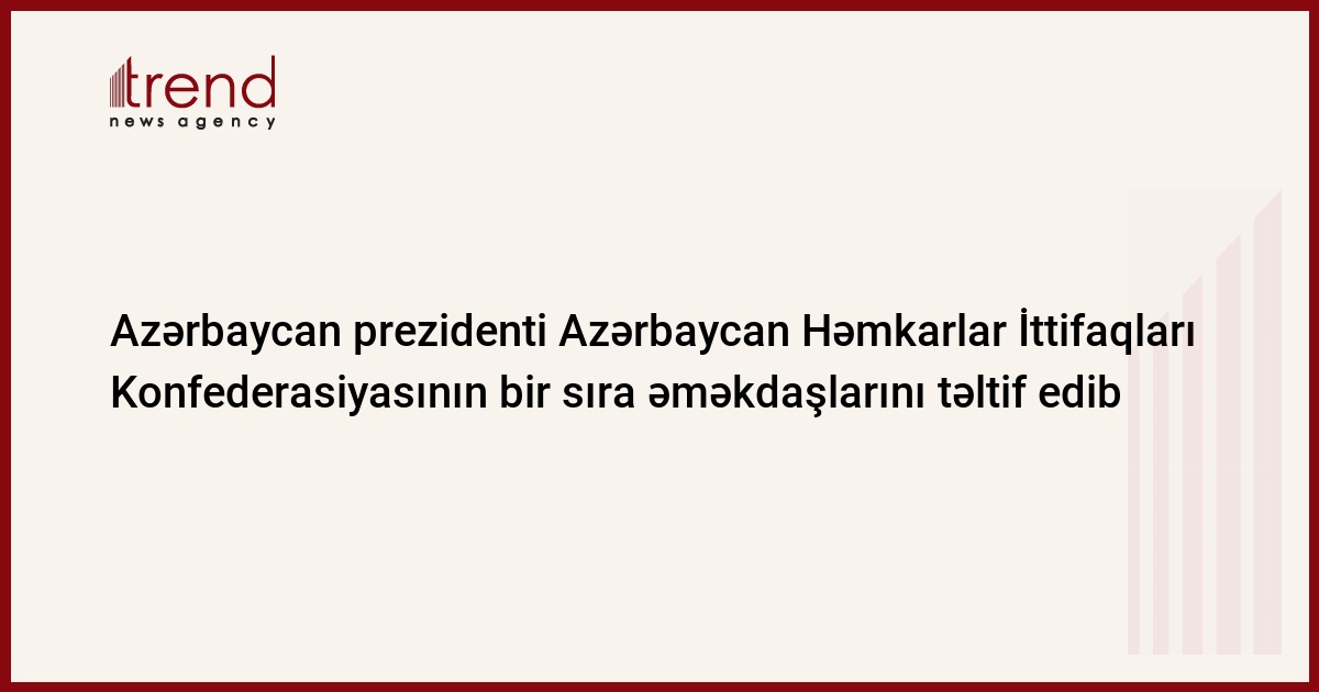 Azərbaycan prezidenti İlham Əliyev oktyabrın 25-də öz sərəncamı ilə Azərbaycan Həmkarlar İttifaqları Konfederasiyasının səkkiz əməkdaşını "Tərəqqi" medalı ilə təltif edib.