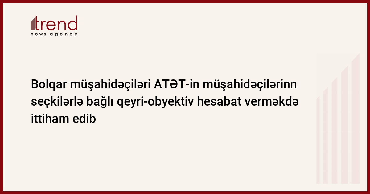 6 noyabr parlament seçkilərini müşahidə etmiş Bolqarıstan muşahidə missiyasının nümayəndələri ATƏT-in müşahidəçilərinn seçkilərlə bağlı qeyri-obyektiv hesabat verməkdə ittiham edib. Noyabrın 8-d ə fəaliyyətlərinə dair hesabat konfransı keçiriblər. Trend xəbər verir ki, bolqar müşahidəçilərini bu barədə fikirlərini noyabırn 8-də keçirdikləri mətbuat konfransında açıqlayıblar.