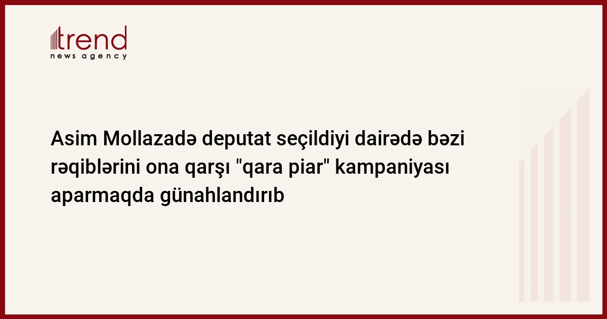 "6 noyabr parlament seçkilərində rəqiblərim mənim əleyhimə qanunsuz şəkildə "qara piar"dan istifadə etdilər. Lakin mən seçki kampaniyası dövründə bunlara cavab verməməklə nümayiş etdirdim ki, rəqiblərimə qarşı əks təbliğatdan istifadə etmirəm". Trend in məlumatına görə, bu fikirləri noyabrın 10-da mətbuat konfransı keçirən Demokratik İslahatlar Partiyasının (DİP) sədri, millət vəkili Asim Mollazadə bildirib. O, seçkinin nəticələrinə dair, həmçinin, namizəd olduğu 22 saylı Nəsimi ikinci seçki dairəsindəki rəqiblərinin iddiaları ilə bağlı mövqeyini açıqlayaraq bildirib ki, həmin seçki dairəsindən namizədliyini irəli sürmüş Murad Sadəddinov və Yaqub Məmmədov KİV vasitəsilə onun ünvanına xoşagəlməz ifadələr işlədib, guya saxta üsullarla deputat seçildiyini söyləyiblər. A.Mollazadənin sözlərinə görə, rəqibləri "qara piar"dan istifadə etməklə demokratik prinsipləri və seçki qanunvericiliyini pozublar, qeyri-sivil, kirli texnologiyaya üstünlük veriblər. DİP sədri seçkidə saxta üsullarla qalib gəlməsi barədə deyilənləri rədd etdiyini vurğulayıb, özünün üstünlüyünü MSK-nın açıqladığı rəqəmlərlə əsaslandırıb.