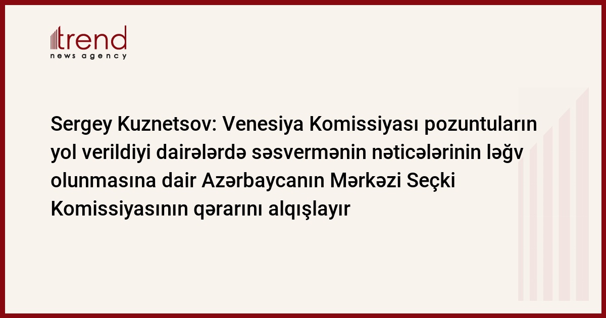 - MSK mövcud qanunvericiliyə uyğun olaraq səsvermənin nəticələrinə təsir edə biləcək pozuntuların yol verildiyi dairələrdə onun nəticələrini ləğv etməlidir. Biz bu istiqamətdə qəbul edilmiş qərarı alqışlayır və ümid edirik ki, pozuntu faktları araşdırılacaq və seçkilər haqqında qanunvericiliyin pozulmasında təqsirli bilinən şəxslər cəzalandırılacaqlar.