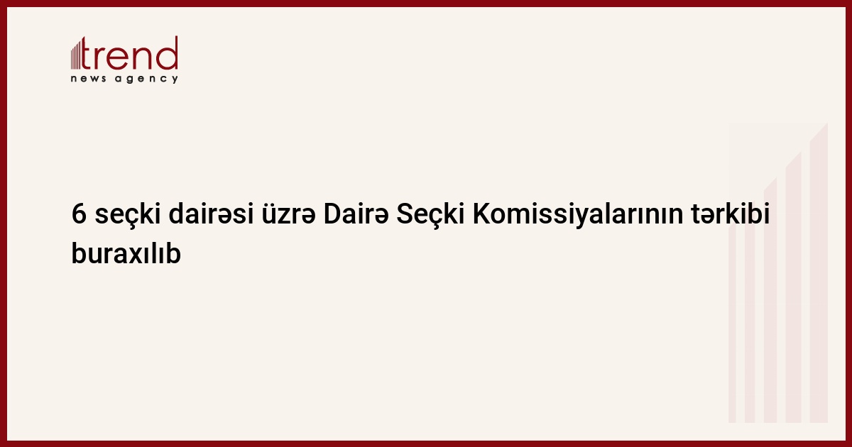 Beləliklə, 9 saylı Binəqədi ikinci, 38 saylı Nizami (Gəncə) ikinci, 42 saylı Sumqayıt ikinci, 110 saylı Zaqatala, 125 saylı Zəngilan-Qubadlı, 119 saylı Ağdam kənd seçki dairələrində dairə seçki komissiyalarının tərkibi tamam buraxılıb.