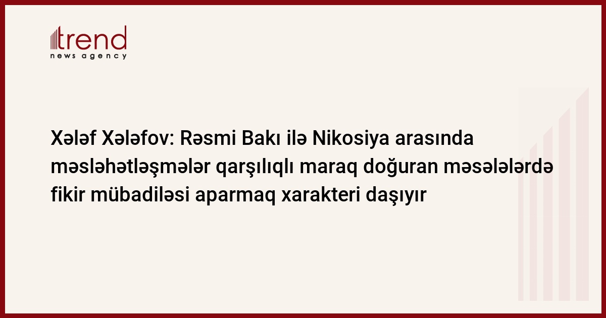 Azərbaycan müstəqil dövlət kimi qarşılıqlı maraq doğuran məsələlərlə bağlı digər dövlətlərlə, o cümlədən, Kipr Respublikası ilə fikir mübadiləsi aparmaq hüququna malikdir. Trend in məlumatına görə, bu barədə jurnalistlərə Azərbaycanın xarici işlər nazirinin müavini Xələf Xələfov bu yaxınlarda Kipr Respublikasının Avropa Şurasındakı iki nümayəndəsinin Bakıy səfəri və Azərbaycanın XİN-də onlarla keçirilən görüşləri şərh edərkən bildirib.