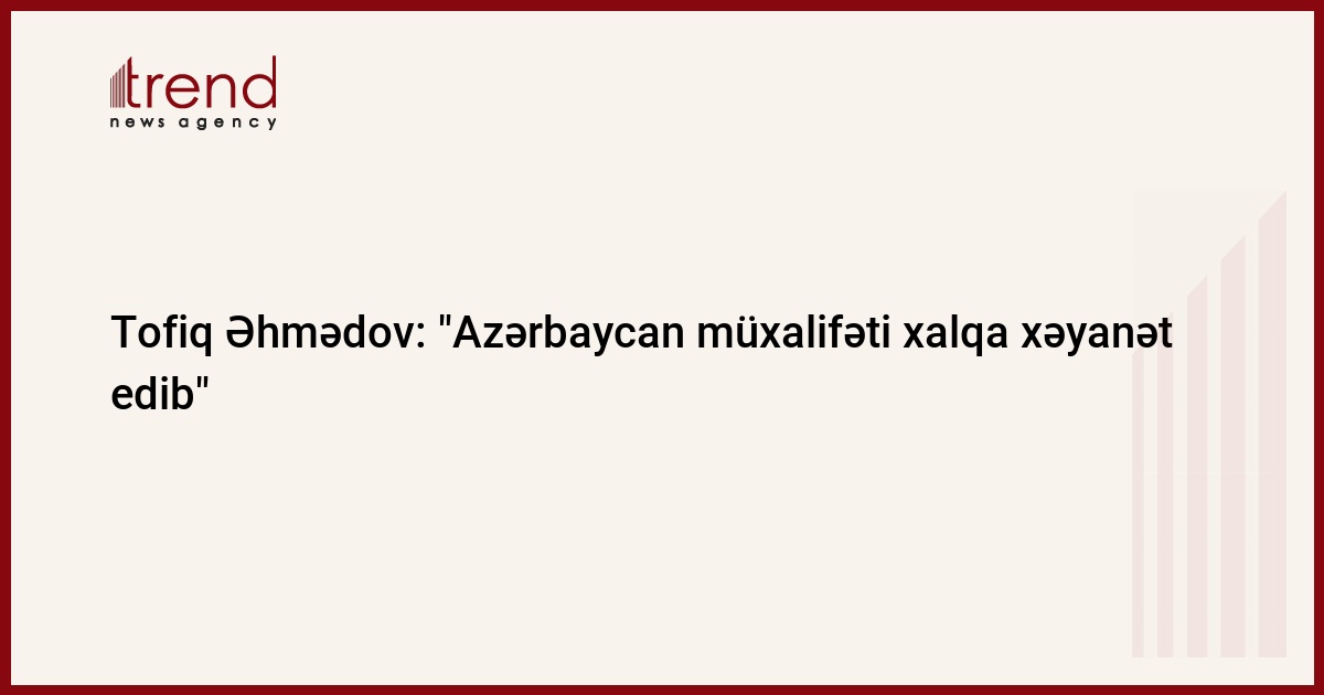 "Azərbaycan müxalifəti xalqa növbəti xəyanətini edib". Bu barədə Trend ə müxalifət mövqeyindən çıxış edən Azərbaycan Sosial Demokrat Partiyasının katibi Tofiq Əhmədov müxalifətin noyabrın 26-da "Qələbə" meydanında keçirdiyi mitinq zamanı aksiya iştirakçıları ilə polis arasında baş verən qarşıdurmaya münasibət bildirərək qeyd edib.