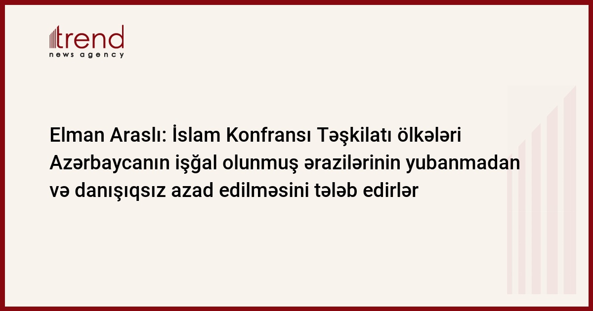 İslam Konfransı Təşkilatı ölkələri Ermənistanın sislahlı qüvvələrinin Azərbaycanın işğal olunmuş ərazilərindən dərhal və danışıqsız çıxarılmasını tələb edir. Bu barədə Trend ə Azərbaycanın Səudiyyə Ərəbistanındakı səfiri Elman Araslı ekskluziv məlumat verib.