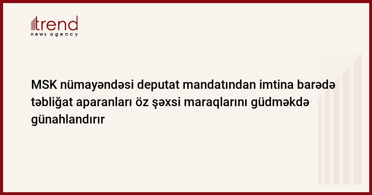 "Seçilmiş şəxslərin mandatdan imtina edilməsi seçicilərin, xalqın iradəsinə hörmətsizlikdir. Bu bir daha göstərir ki, mandatdan imtina barədə təbliğat aparan çevrələr xalqın, seçicinin maraqlarını deyil, öz konyuktur maraqlarını hər şeydən üstün tutur". Bu fikirləri Trend ə açıqlamasında Mərkəzi Seçki Komissiyasının (MSK) mətbuat və informasiya xidmətinin rəhbəri Azər Sarıyev bildirib.