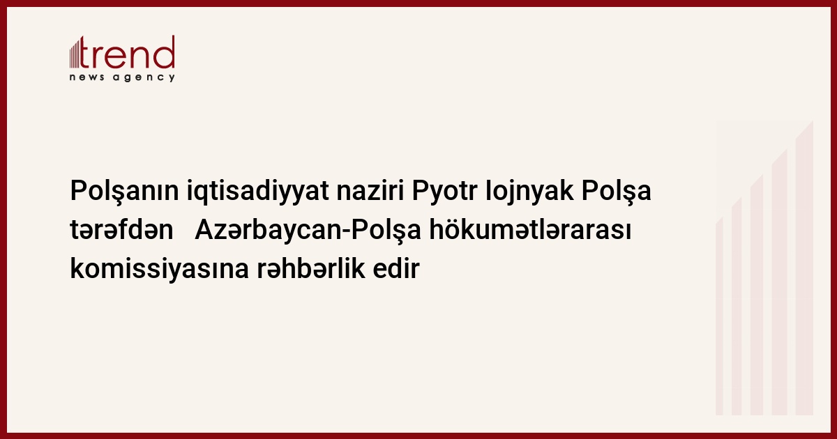 Polşanın iqtisadiyyat naziri Pyotr Iojnyak iqtisadi əməkdaşlıq üzrə Azərbaycan-Polşa hökumətlərarası komissiyasının polyak tərkibinə rəhbərlik edir. Bu barədə Trend ə Polşanın Azərbaycandakı səfirinin müşaviri Ioyçex Quretski rəhbərlik edir.