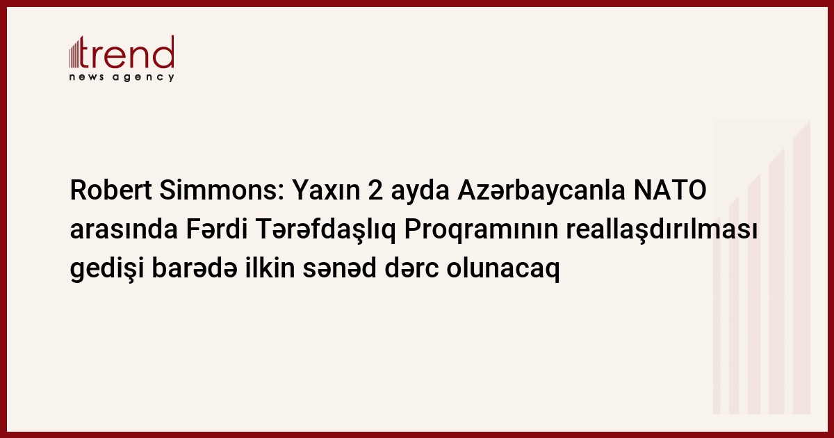 Trend in məlumatına görə, bu barədə yanvarın 6-da Azərbaycan-NATO Beynəlxalq Məktəbinin qış sessiyasının iştirakçıları ilə televiziya konfransında NATO-nun Cənubi Qafqaz və Orta Asiyada xüsusi nümayəndəsi Robert Simmons bəyan edib.
