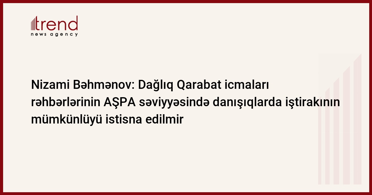 Dağlıq Qarabağ icmaları rəhbərlərinin Avropa Şurası Parlament Assambleyası (AŞPA) səviyyəsində keçirilən danışıqlarda iştirakınını mümkünlüyü istisna edilmir. Bu barədə Trend ə Dağlıq Qarabağın azərbaycanlı icmasının rəhbəri, Şuşanın İcra Hakimiyyətinin rəhbəri Nizami Bəhmənov danışıqlar prosesinin gedişini, eləcə də AŞPA-nın Dağlıq Qarabağ münaqişəsi üzrə alt komitəsinin qarşıdakı iclasını şərh edərkən ekskluziv məlumat verib.