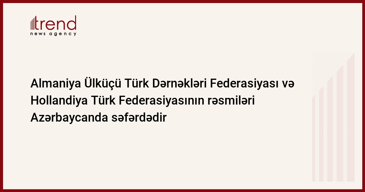 Almaniya Ülküçü Türk Dərnəkləri Federasiyası və Hollandiya Türk Federasiyasının rəsmiləri Azərbaycanda səfərdədir. Bu barədə Trend ə Millətçi Demokratlar Hərəkatının (MDH) təsisçilərindən olan Türk Millətçi Partiyasının (TMP) sədri Vüqar Bəyturan bildirib.