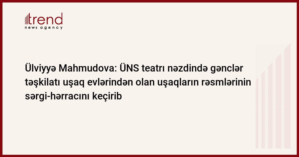 ÜNS teatrı nəzdində gənclər təşkilatı uşaq evlərindən olan uşaqların xeyrinə sərgi-hərrac keçirib. Bu barədə Trend ə sərginin təşkilatçısı Ülviyyə Mahmudova bildirib.