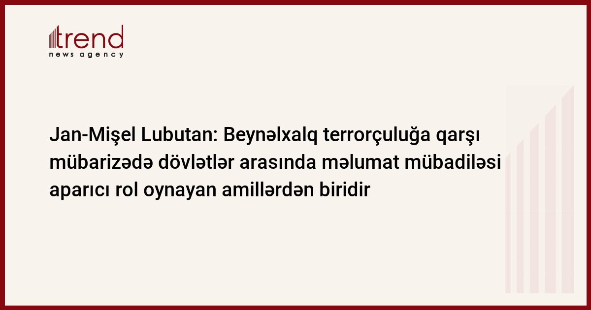 Beynəlxalq terrorçuluğa qarşı mübarizədə dövlətlər arasında məlumat mübadiləsi aparıcı rol oynayan amillərdən biridir. Trend xəbər verir ki, bu sözləri İnterpolun Baş Katibliyinin "Kalkan" layihəsi çərçivəsində Bakıda keçirilən 2-ci görüşündə Baş Katibliyin Polis Xidmətləri üzrə icraçı direktoru Jan-Mişel Lubutan öz çıxışında söyləyib.