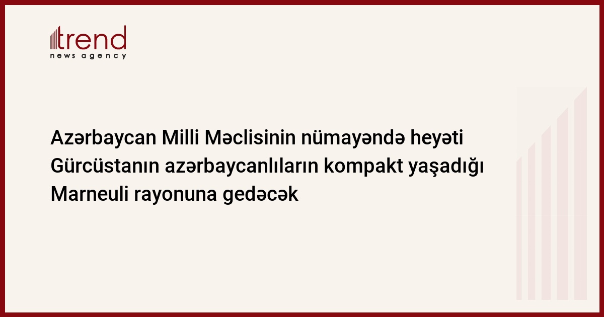 Fevralın 8-də Azərbaycan Milli Məclisinin I vitse-spikeri Ziyafət Əsgərovun başçılıq etdiyi nümayəndə heyəti Gürcüstanın azərbaycanlıların kompakt yaşadığı Marneuli rayonuna gedəcək. Bu barədə Trend ə Azərbaycanın Gürcüstandakı səfirliyinin mətbuat katibi Elxan Poluxov bildirib.