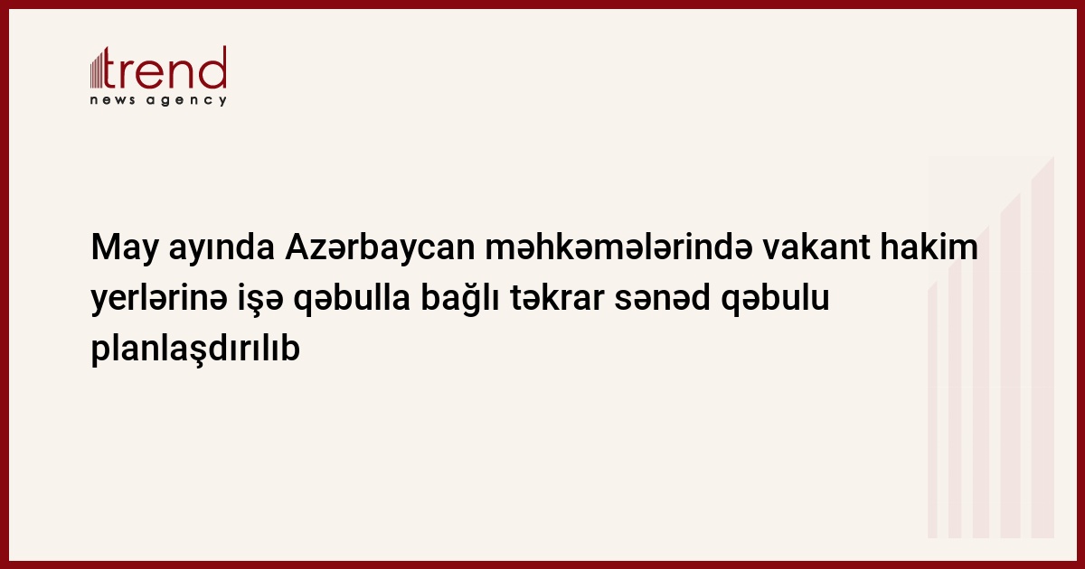 Cari ilin may ayında Azərbaycan məhkəmələrində vakant hakim yerlərinə işə qəbulla bağlı təkrar sənəd qəbulu planlaşdırılıb. Bu barədə Trend ə Hakimlərin Seçki Komitəsinin sədri İman Nağıyev məlumat verib.