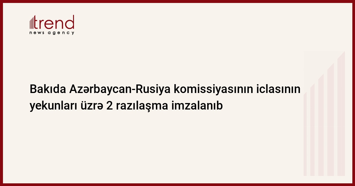 Bakıda fevralın 21-də keçirilən Azərbaycan-Rusiya komissiyasının iclasının yekunları üzrə 2 sənəd imzalanıb. Azərbaycanın mədəniyyət naziri bulğfaz Qarayev i Kinematoqrafiya və Mədəniyyət üzrə Federal Agentliyin rəhbəri Mixail Şvıdkoy mədəni əlaqələrin genişləndirilməsi və əməkdaşlığın perspektivləri üzrə razılaşma imzalayıblar. Eləcə də Azərbaycanın baş nazirinin müavini Abbas Abbasov və Rusiyanın sənaye və energetika naziri Viktor Xristenko iqtisadi əməkdaşlıq üzrə Azərbaycan-Rusiya komissiyasının 10-cu iclasının protokolunu imzalayıblar. Bu barədə Trend məlumat verib.
