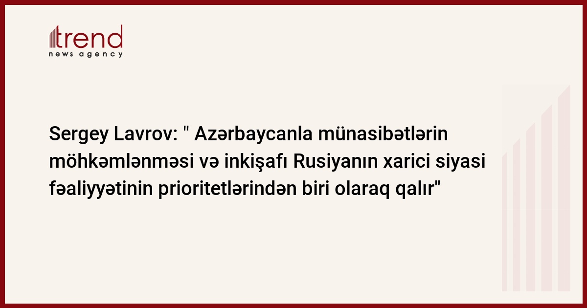 Rusiya Federasiyasının xarici işlər nazirinin Trend ə müsahibəsi