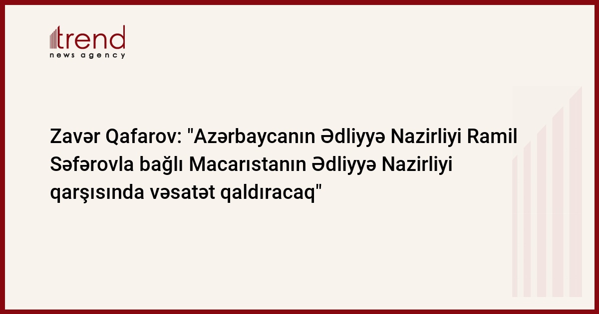 Azərbaycanın Ədliyyə Nazirliyi Ramil Səfərovla bağlı Macarıstanın Ədliyyə Nazirliyi qarşısında vəsatət qaldıracaq. Trend xəbər verir ki, bu barədə jurnalistlərə Azərbaycan Respublikası Ədliyyə Nazirliyinin Beynəlxalq Hüquq Əməkdaşlığı İdarəsinin rəisi Zavər Qafarov məlumat verib.