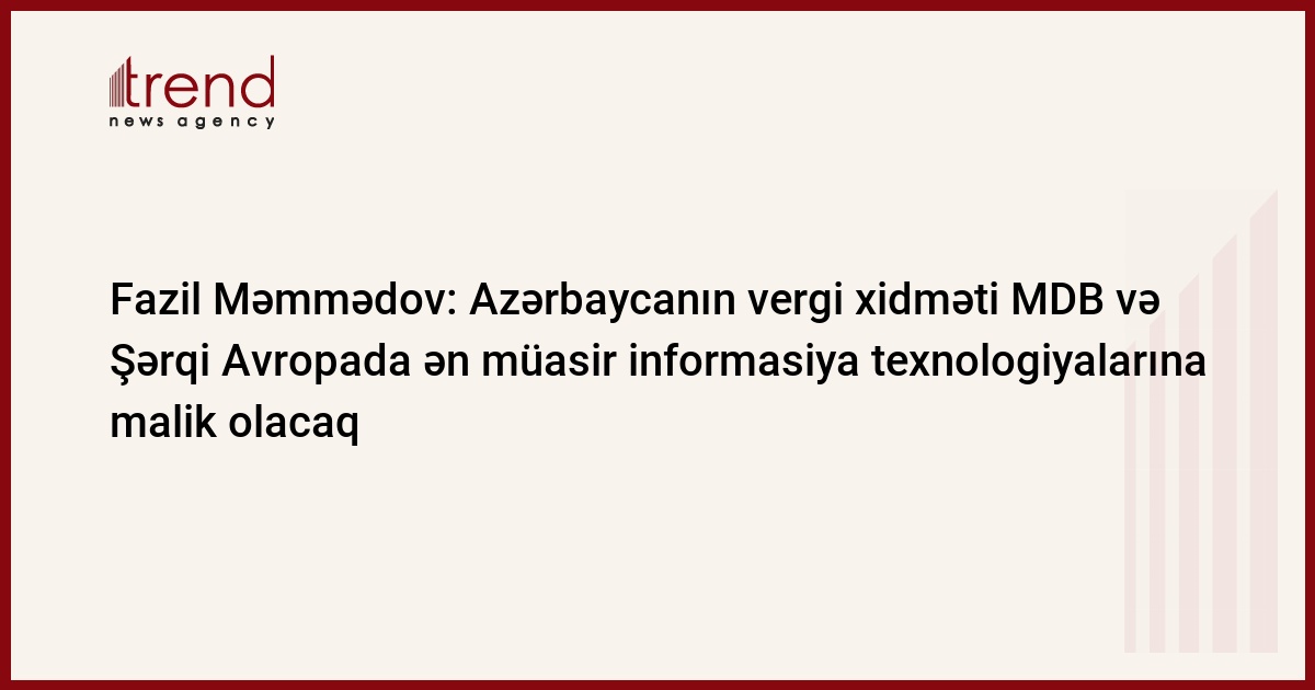 Nazirin sözlərinə görə, bu layihənin həyata keçirilməsi nəticəsində ölkənin vergi sistemi təkcə MDB məkanında deyil, eləcə də Şərqi Avropada ən müasir texnologiyalara malik olacaq.