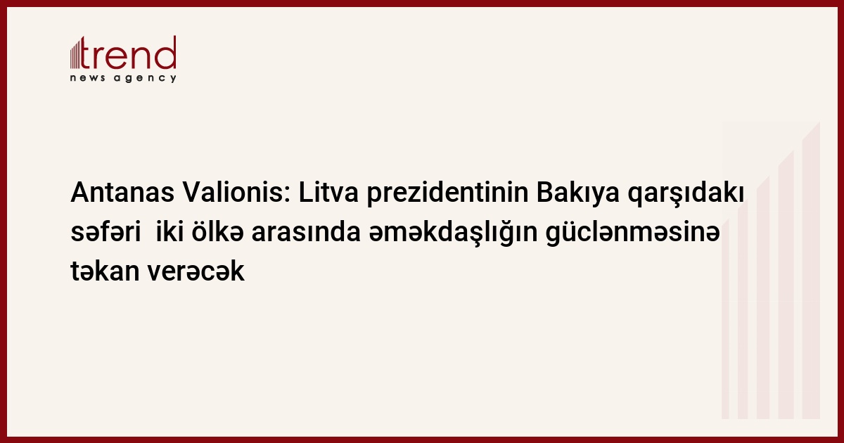 - Düşünürəm ki, Litva prezidentinin aprel ayına planlaşdırılmış səfərinin gündəliyi hər iki tərəfi maraqlandıran müəyyən sahələrdə ikitərəfli əməkdaşlıq sahəsində, AB və NATO-ya inteqrasiya, energetika təhlükəsizliyi kimi əsas məsələləri əks etdirir. Regional məsələlər və Baltik-Qara dəniz-Xəzər dənizi çərçivəsində əməkdaşlıq müzakirələr üçün əsas məsələlər olacaq. Azərbaycanın qarşıdakı " Ümumi qonşuluq üçün ümumi görüntülər" adlı konfransda yüksək səviyyədə iştirakı gözlənilir ki, orada biz regionumuzun gələcəyini müzakirə edəcəyik.