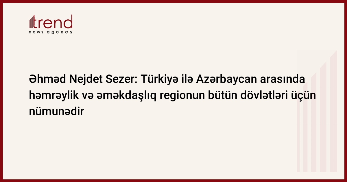 Türkiyə ilə Azərbaycan arasında həmrəylik və əməkdaşlıq regionun bütün dövlətləri üçün nümunədir. Trend bildirir ki, Türkiyə prezidenti Əhməd Nejdet Sezerin aprelin 4-də Bakıya səfəri zamanı səsləndirdiyi bəyanatında bu barədə deyilir.