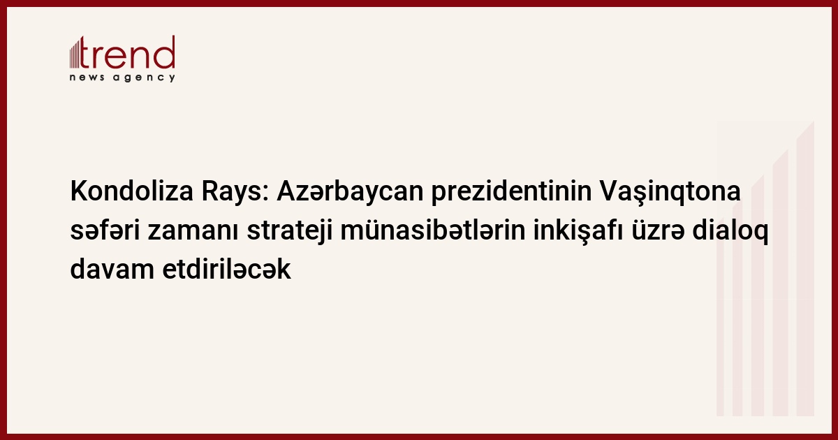 O, ABŞ-ın Azərbaycanın demokratikləşməyə yönələn siyasətini dəstəklədiyini bəyan edib. K.Rays Azərbaycan prezidentinin Vaşinqtona qarşıdakı səfəri zamanı strateji münasibətlərin inkişafı üzrə dialoqun davam etdiriləcəyinə ümidvar olduğunu bildirib.