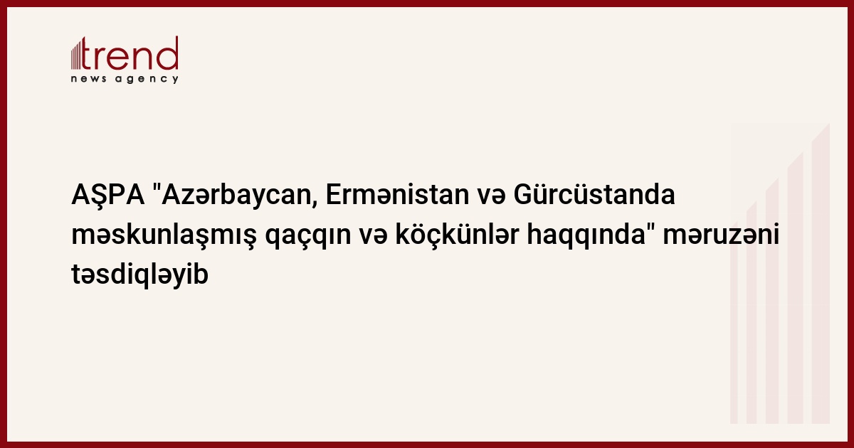 Latviyalı məruzəçi Boris Çileviçin "Azərbaycan, Ermənistan və Gürcüstanda məskunlaşmış qaçqın və köçkünlər haqqında" məruzəsi (10 835 saylı) aprelin 13-də Avropa Şurası Parlament Assambleyasının Strasburqda keçirilən yaz sessiyasının iclasında qəbul olunub. Bu barədə Trend in Strasburqdakı müxbiri xəbər verir.