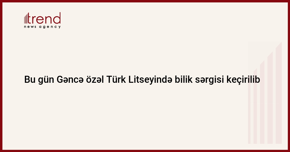 Bu gün Gəncə Özəl Türk Litseyində 30 müəllim və 100 şagirdin iştirakı ilə bilik sərgisi keçirilib. Tədbirdə həmçinin şəhər icra hakimiyyətinin başçısı Eldar Əzizov və digər rəsmi şəxslər də iştirak edib. Burada 100 şagirdin Azərbaycan tarixinə həsr etbikləri rəsm əsərləri və fiqurlar nümayiş etdirilib.