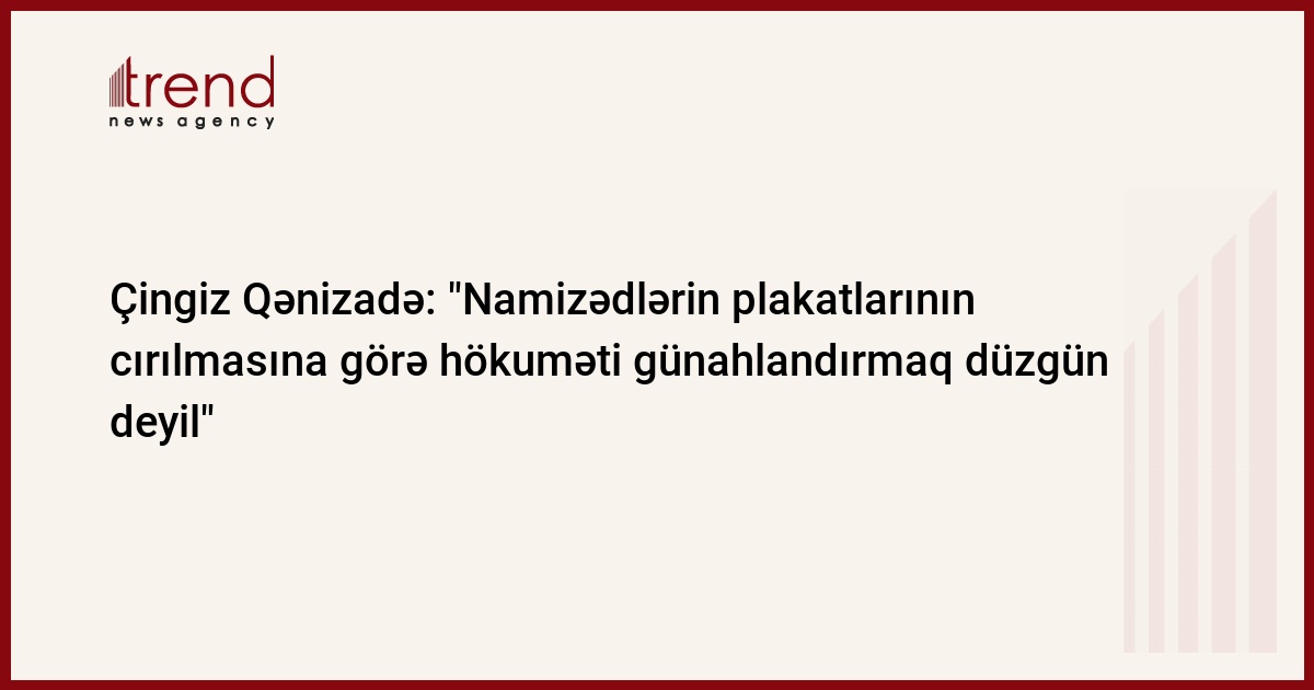 "Namizədlərin plakatlarının cırılmasına görə hökuməti, yaxud seçki komissiyalarını günahlandırmaq düzgün deyil". Bu fikirləri Trend ə açıqlamasında deputatlığa namizəd, hüquqşünas Çingiz Qənizadə bildirib.