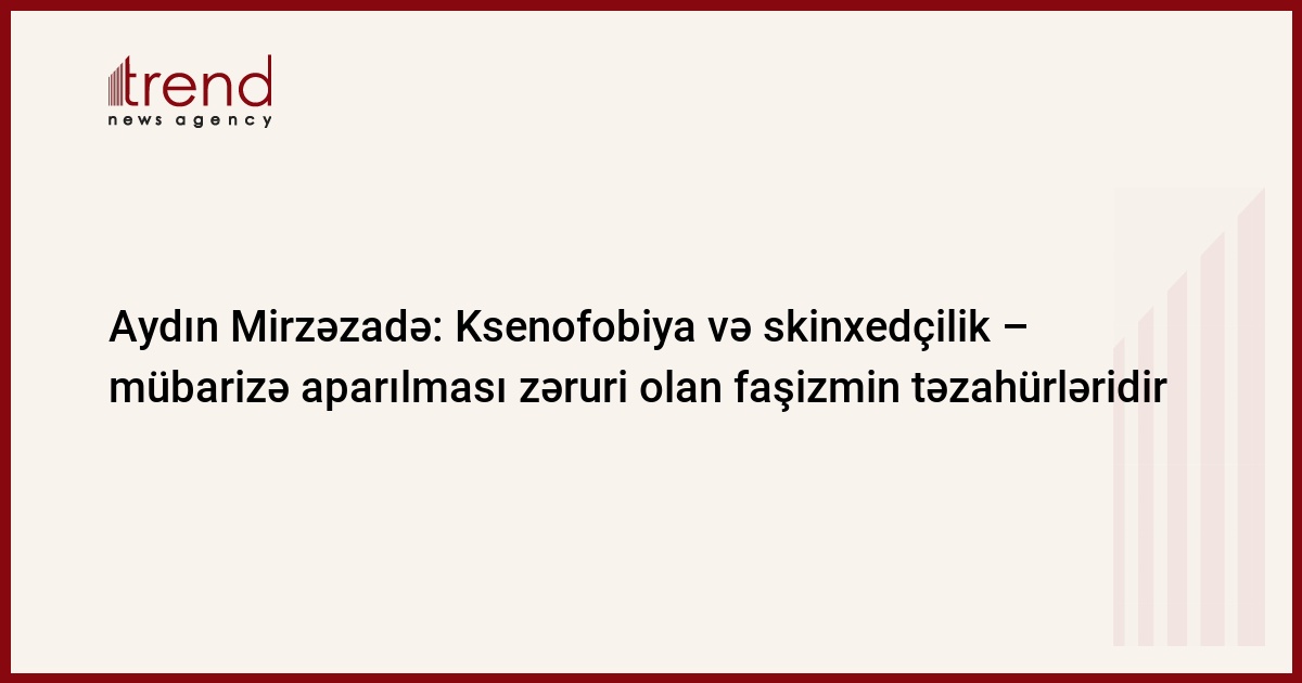 Rusiya parlamentariləri ksenofobiya və skinxedçiliklə mübarizəyə diqqətlə yanaşmalıdır. Bu haqda Azərbaycanın AŞPA-dakı nümayəndə heyətinin üzvü Aydın Mirzəzadə Parlament Assambleyasının yaz sesiyasında çıxışı zamanı bəyan edib.