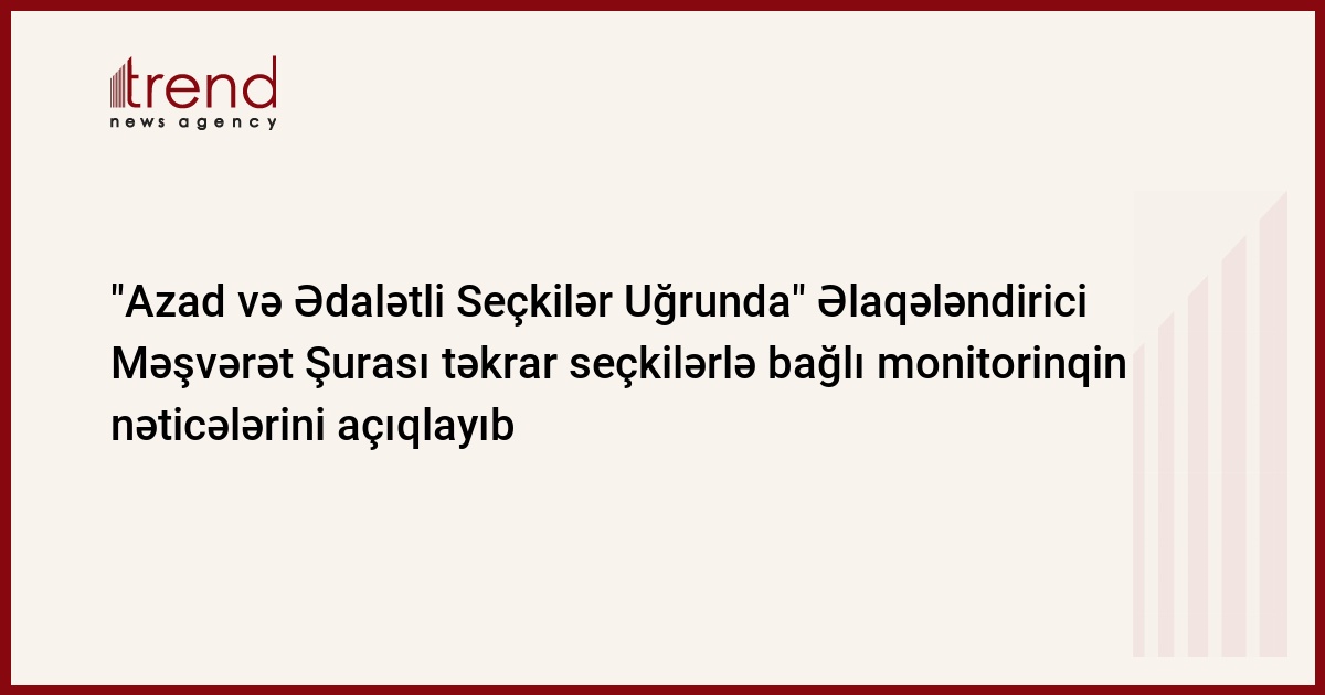 "Azad və Ədalətli Seçkilər Uğrunda" Əlaqələndirici Məşvərət Şurası 13 mayda keçiriləcək təkrar parlament seçkiləri ilə bağlı mayın 10-dək apardığı monitorinqin nəticələrini açıqlayıb. Trend in məlumatına görə, mayın 11-də nəticələrə dair KİV-lər üçün hesabat konfransı keçirilib.