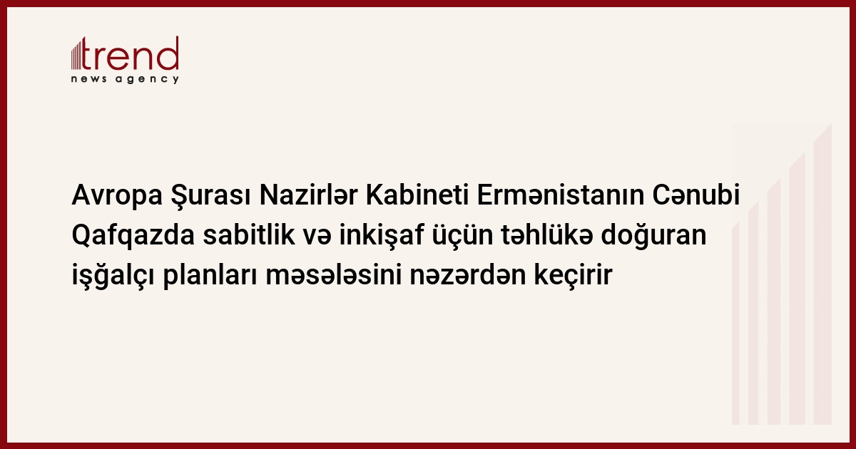 Mayın 24-də Avropa Şurasının (AŞ) Nazirlər Komitəsi daimi nümayəndələr səviyyəsində Azərbaycanın AŞPA -dakı parlament nümayəndə heyətinin üzvü Rafael Hüseynovun "Ermənistanın Cənubi Qafqazda sabitlik və inkişaf üçün təhlükə doğuran işğalçı planları" adlı yazılı sorğusunu nəzərdən keçirəcək. Trend in verdiyi məlumata görə, bu məsələ mayın 24-də Strasburqda keçiriləcək AŞNK-nin 965-ci iclasının layihəsinə daxildir.