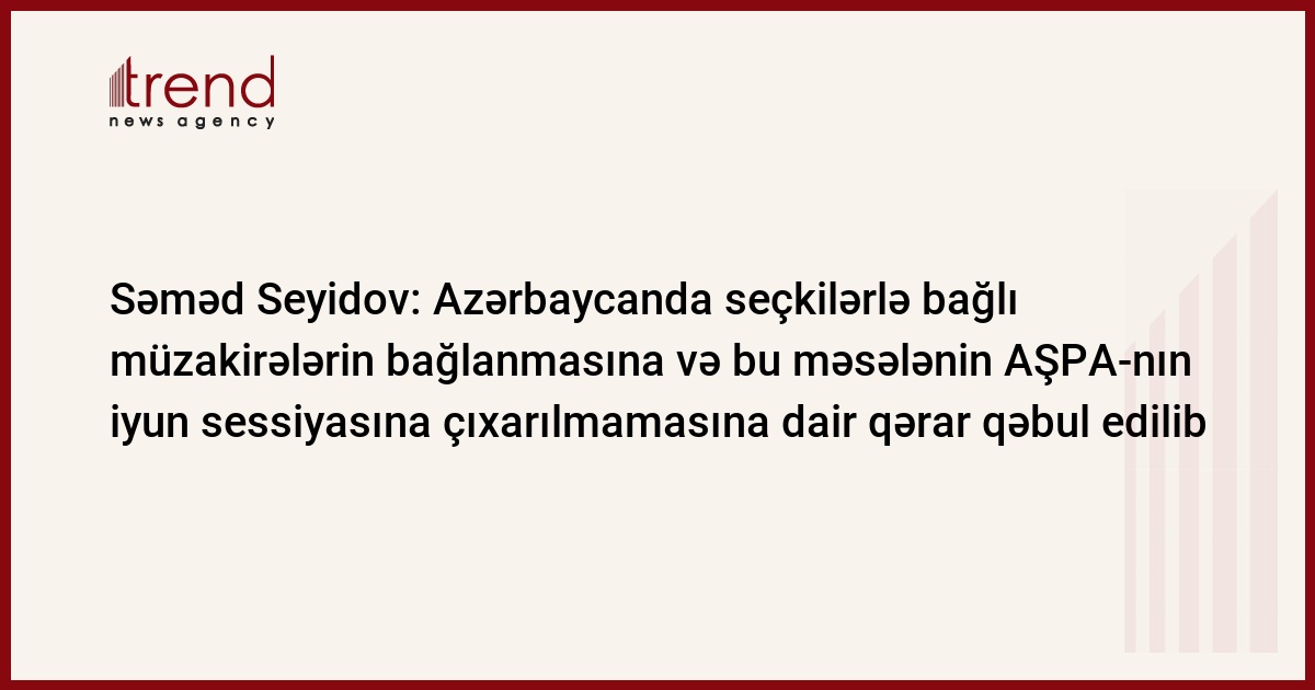 Deputat qeyd edib ki, müzakirələrin yekunu üzrə "Azərbaycanda seçkilərlə bağlı müzakirələrin bağlanmasına və bu məsələnin AŞPA-nın iyun sessiyasına çıxarılmamasına dair qərar qəbul edilib.