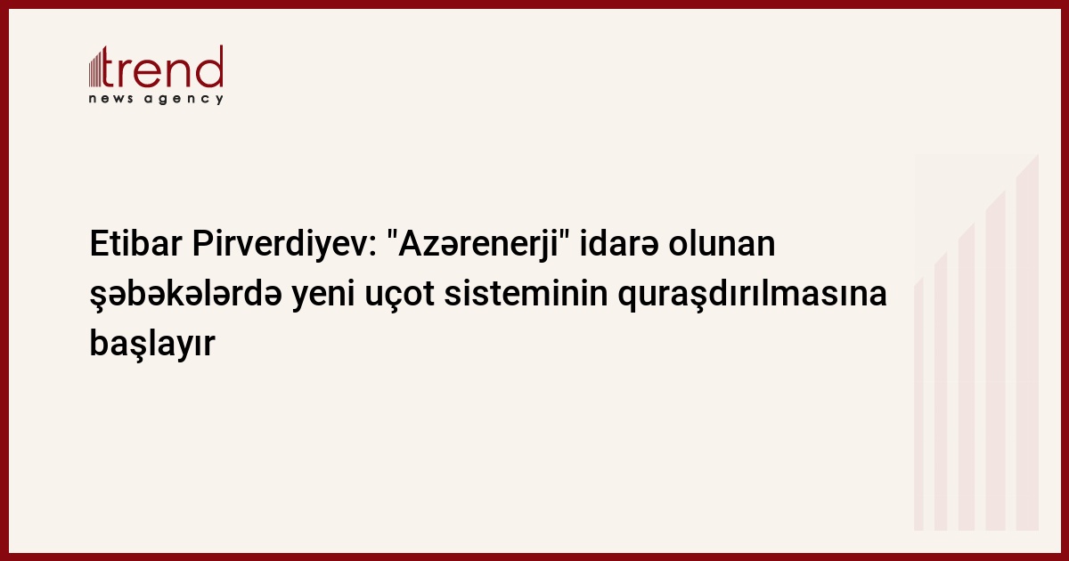 Yaxın günlərdə "Azərenerji" SC idarə olunan şəbəkələrdə əhali üçün yeni uçot sistemi və sayqacların quraşdırılmasına başlayacaq. Trend agentliyinin məlumatına əsasən, bu barədə "Azərenerji"nin prezidenti Etibar Pirverdiyev bildirib. Gələcəkdə sayqaclar SC-nın enerji paylaşdırılması ilə məşğul olduğu bütün regionlarda quraşdırılacaq.