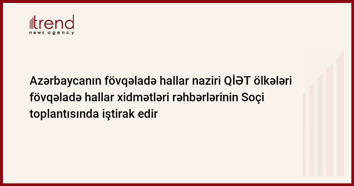 Azərbaycanın fövqəladə hallar naziri Kəmaləddin Heydərov Qara Dəniz İqtisadi Əməkdaşlıq Təşkilatına (QİƏT) üzv ölkələrin fövqəladə hallar xidmətləri rəhbərlərinin iyunun 6-da Soçidə öz işinə başlayan toplantısında iştirak edir. Bu barədə Trend ə Fövqəladə Hallar Nazirliyinin mətbuat xidmətindən məlumat verilib.