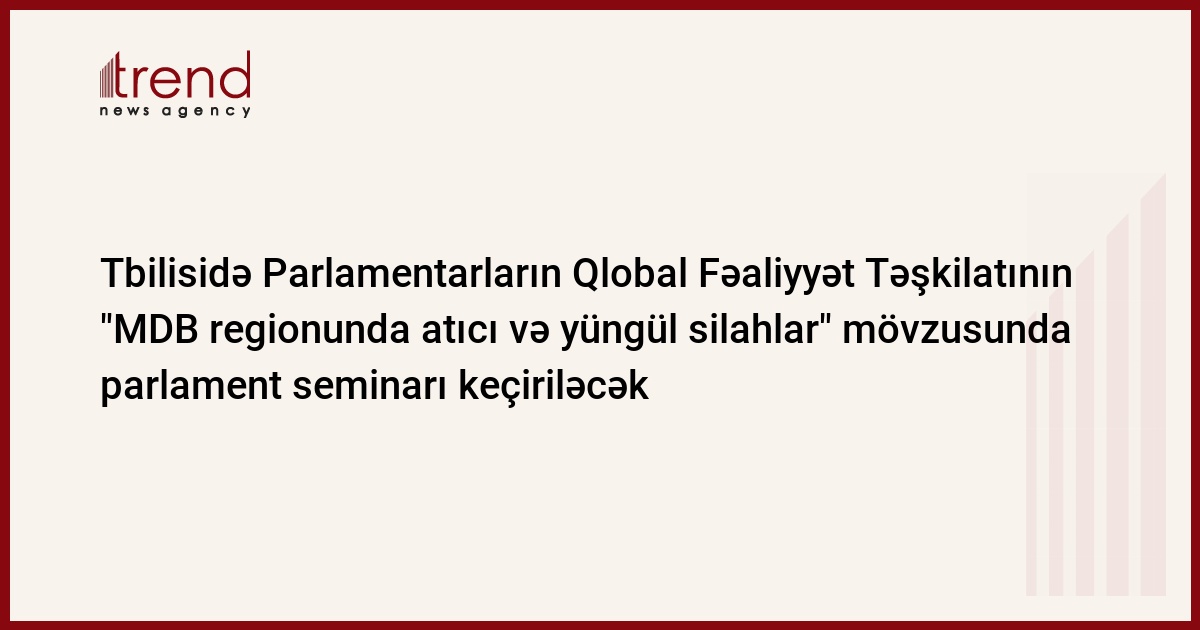 İyunun 9-dan 10-dək Tbilisidə Parlamentarların Qlobal Fəaliyyət Təşkilatının "MDB regionunda atıcı və yüngül silahlar" mövzusunda Parlament seminarı keçiriləcək. Bu barədə Trend ə Milli Məclisin mətbuat xidmətindən bildiriblər.