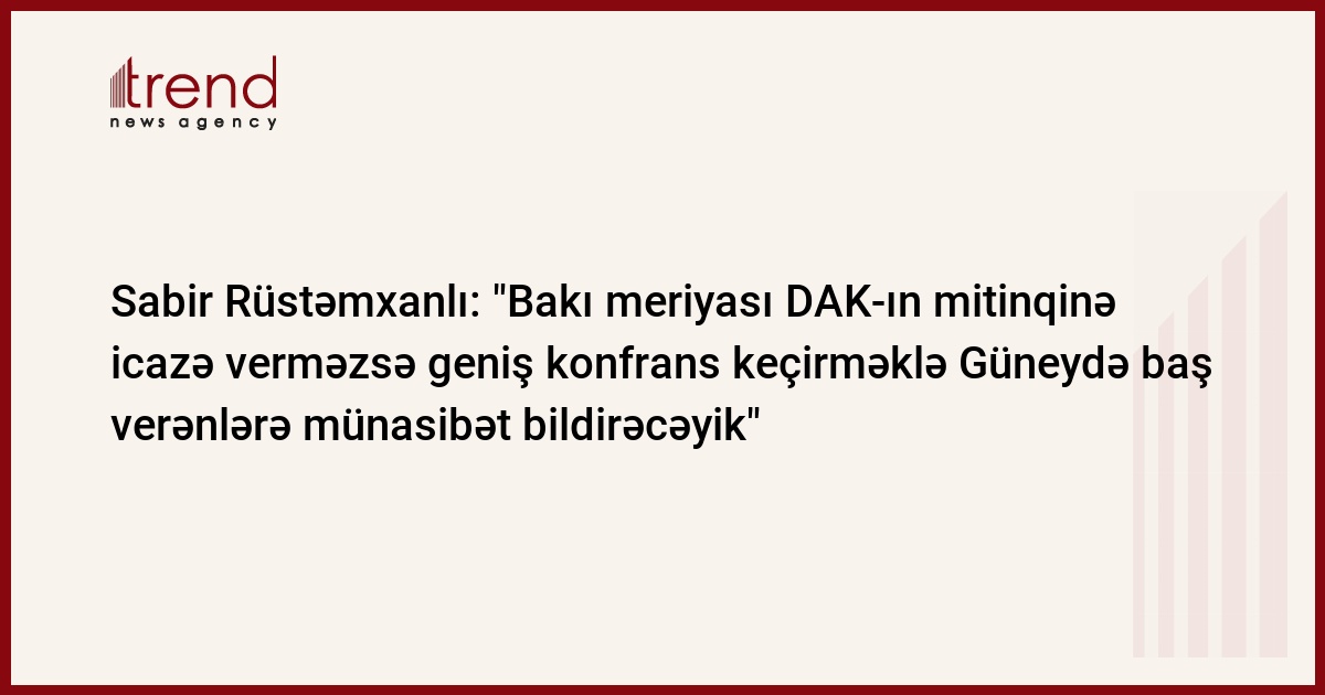 Qeyd edək ki, DAK Güney Azərbaycanda yaşayan soydaşlarımızın hüquqlarının tapdanmasına etiraz ələaməti olaraq iyunun 9-da "Qələbə" meydanında mitinq planlaşdırıb. Bununla bağlı Bakı meriyasına müraciət ünvanlayıb. Ancaq hələlik meriyadan DAK-ın müraciətinə cavab verilməyib. S.Rüstəmxanlı onu da qeyd edib ki, DAK planlaşdırdığı mitinqdə iştirak etmək üçün müxtəlif siyasi qüvvələrə də müraciət edib.