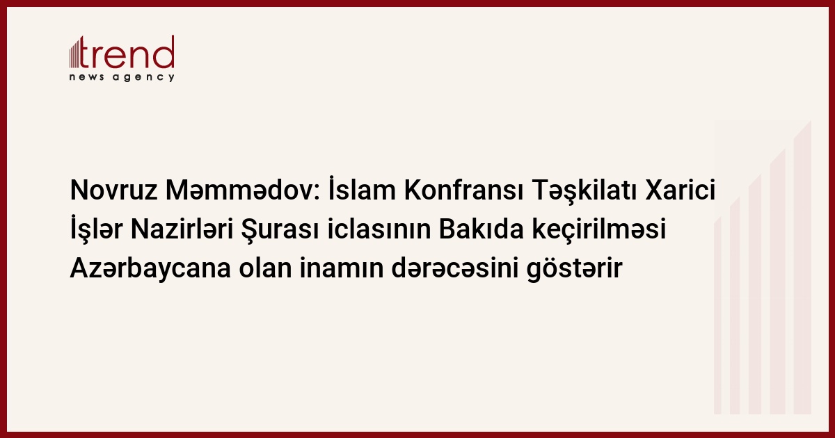 İslam Konfransı Təşkilatı (İTK) Xarici İşlər Nazirləri Şurası (XİNŞ) iclasının Bakıda keçirilməsi Azərbaycana olan inamın dərəcəsini və bölgədə reytinqinin artmasını göstərir. Bu barədə Trend ə Azərbaycan Prezidenti İcra Aparatı xarici əlaqələr şöbəsinin müdiri Novruz Məmmədov bildirib.